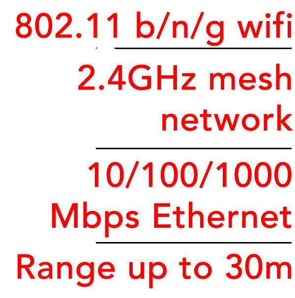 Transmission range wifi/mesh up to 30m. |