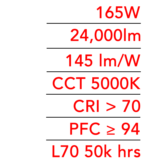 Super bright LED’s provide excellent output, permitting one-to-one replacement of existing HID/fluorescent lighting.